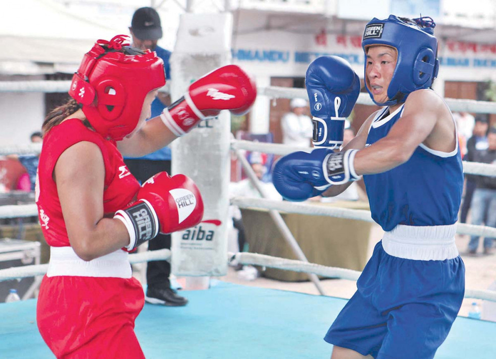 काठमाडौँ । नेपाली सेनाकी मीनु गुरुङ र एपिएफ क्लबकी सन्जुमाया थिङ काठमाडौँमा जारी गणेशमान सिंह स्मृति राष्ट्रिय बक्सिङ प्रतियोगिताको क्वाटरफाइनलमा प्रवेश गरेकी छिन् ।