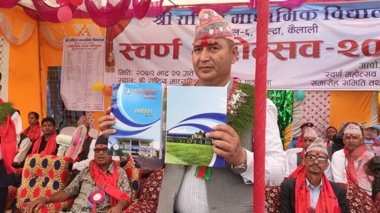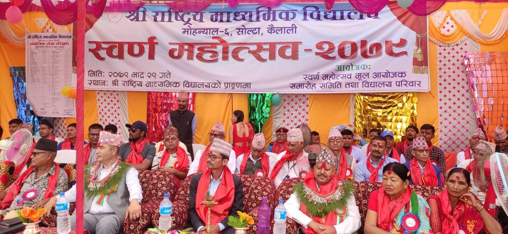 कैलाली । राष्ट्रिय माध्यामिक विद्यालय सोल्टाले एक भव्य समारोहबीच आफ्नो स्थापनाकालको स्वर्ण जयन्ती मनाएको छ । विद्यालयले स्वर्ण जयन्ती कार्यक्रम यही भदौ २९ गते बुधबार मनाएको हो । कैलाली जिल्लाको दूर्गम क्षेत्र मानिने मोहन्याल गाउँपालिका–६, मा पर्ने सो विद्यालयले स्थापनाकालको ५० औं वसन्तमा पाइला टेकेको छ ।