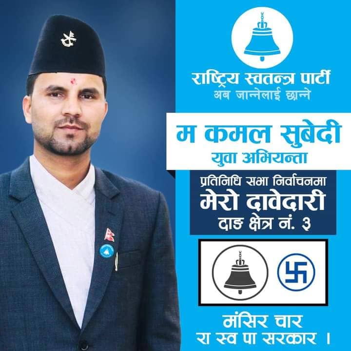 काठमाडौं । आगामी मंसिर ४ मा हुन लागेको संघ र प्रदेश निर्वाचनमा युवा अधिकारकर्मी कमल सुवेदीले प्रतिनिधि सभा सदस्यमा उम्मेदवारी घोषणा गरेका छन् । उनले दाङको क्षेत्र नं ३ बाट प्रतिनिधि सभा सदस्यमा उम्मेवारी दिने घोषणा गरेका हुन् । राष्ट्रिय स्वतन्त्र पार्टीबाट उम्मेवारी दिएका सुवेदी राष्ट्रिय युवा गैसस महासंघ नेपालको संस्थापक केन्द्रीय सदस्य एवं सामुदायिक रेडियो हापुरेका संस्थापक अध्यक्ष हुन् ।