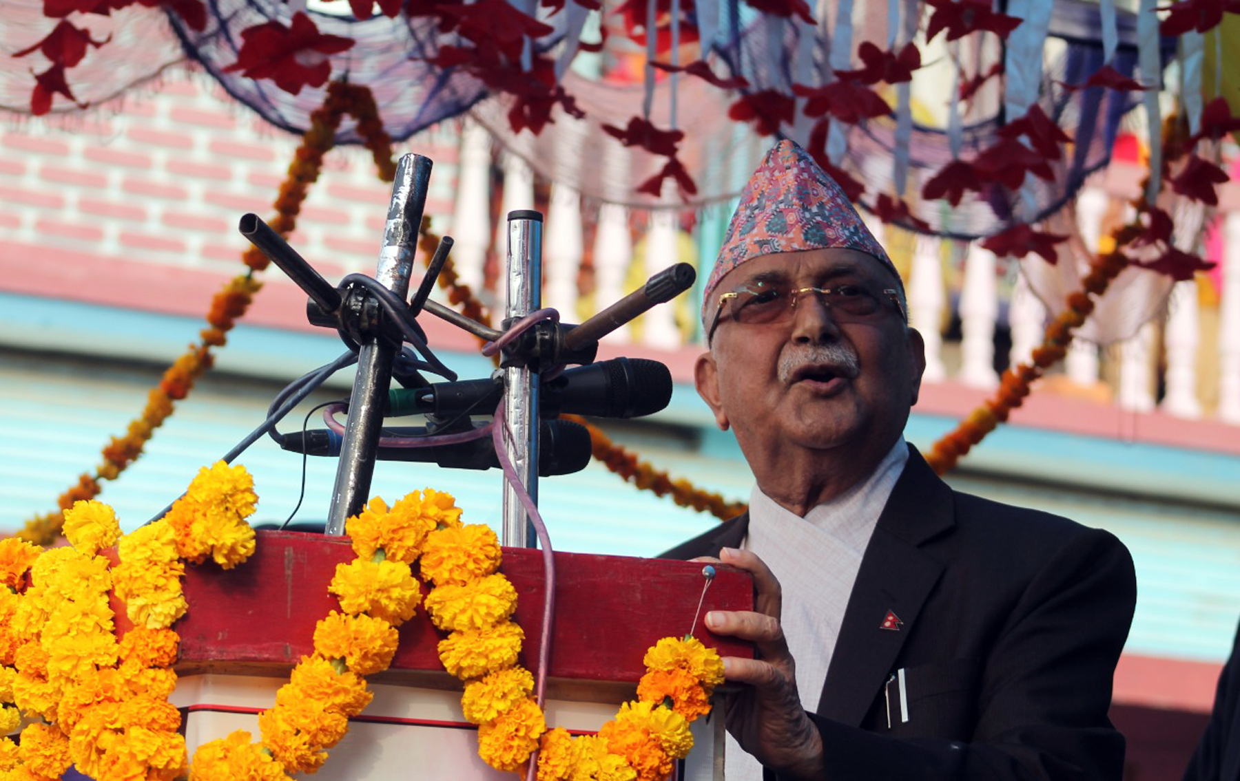 ओलीले आफ्नो सरकारको पालामा भएगरेका कामबारे चर्चा गरे । उनले अहिलेको गठबन्धन सरकारको कडा विरोध गरे । उनले अहिलेको सरकारलाई अलच्छिना भनेर आरोप लगाए । यो सरकार खान मात्र आएको टिप्पणी गरे । आफ्नो सरकारको पालामा विकासैविकास भएको, अहिलेको सरकारले सबै विकास आयोजनाको बजेट काटेको भन्दै आपत्ति जनाए ।