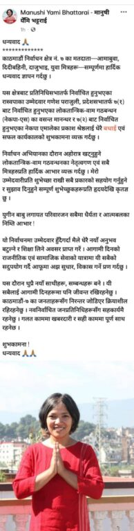 मानुषीले दिइन् मतदातालाई धन्यवाद, निर्वाचितलाई शुभकामना