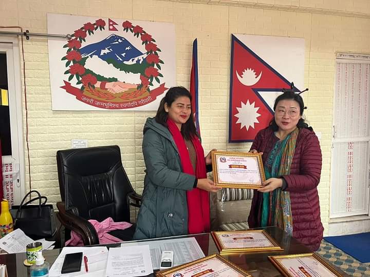 नगरपालिकासँग समन्वय गरी नगरभित्र काम गर्दै आएको भन्दै संस्थाका प्रतिनिधिहरुलाई नगर प्रमुख सुशीला शाहीले प्रसंशापत्र प्रदान गरेकी हुन् । नगरपालिकाभित्रका संस्थाहरुले सधैं नगरपालिकासँग समन्वय गरी कार्य अगाडि बढाएको प्रति खुशी व्यक्त गर्दै नगर प्रमुख शाहीले प्रसंशापत्र प्रदान गरेको हो ।