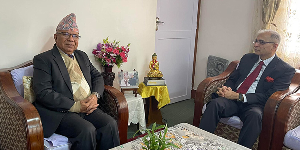 काठमाडौं । भारतीय विदेश सचिव विनयमोहन क्वात्रा र नेकपा एकीकृत समाजवादीका अध्यक्ष माधव नेपालबीच भेटवार्ता भएको छ । अध्यक्ष नेपाललाई भेट्न विदेश सचिव क्वात्रा मंगलबार बिहान कोटेश्वर पुगेका हुन् ।