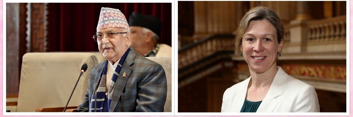 काठमाडौं । नेकपा (एमाले)का अध्यक्ष केपी शर्मा ओलीसँग नेपालका लागि बेलायतका राजदूत निकोला पोलिटले आज शिष्टाचार भेटवार्ता गरेकी छिन् ।