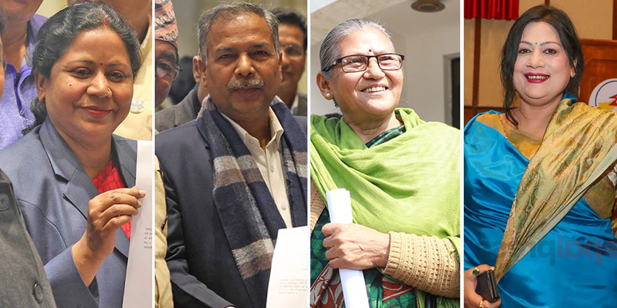 उपराष्ट्रपति पदका लागि जनता समाजवादी पार्टी नेपालबाट रामसहायप्रसाद यादव र प्रमिला यादवको उमेदवारी परेको छ। गठबन्धनबाटै रष्ट्रिय जनमत पार्टीबाट ममता झाले पनि उम्मेदवारी दिएकी छन्। नेकपा एमालेबाट अष्टलक्ष्मी शाक्यको गरी चार जनाको उमेदवारी परेको छ।