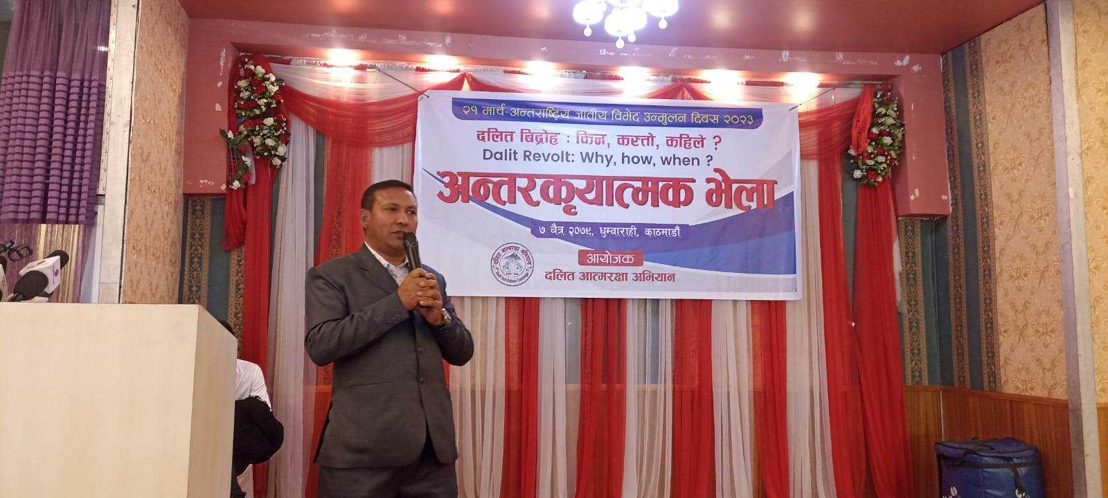 त्यसैगरी कार्यक्रममा दलित आत्मारक्षा अभियानका संयोजक डा. मित्र परियारले जबसम्म छुवाछुतको अन्त्य गाउँबाट हुँदैन तबसम्म संविधानमा जति उल्लेख गरेपनि त्यसको अर्थ नहुने बताउँदै त्यसको अन्त्यका लागि आन्दोलनको आँधिबेहेरी आवश्यक रहेको त्यसको नेतृत्व दलित आत्मारक्षा अभियानले गर्ने बताए ।