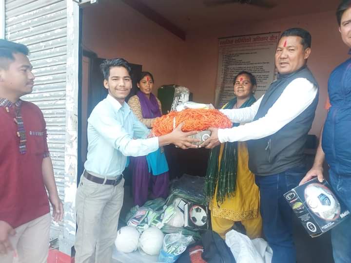 खेलकूद सामग्री गाउँपालिका अध्यक्ष कर्णबहादुर कुँवर र उपाध्यक्ष गणेशराज गिरीको सक्रियतामा बाल क्लबहरुलाई खेलकुद सामग्री बितरण गरिएको हो।