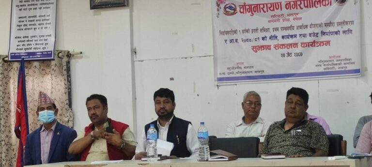 नगर प्रमुख खत्रीले जनप्रतिनिधिको एक वर्षे कार्यकालको प्रगति समीक्षा,आवधिक योजनाको मस्यौदा र नीति कार्यक्रम तथा बजेट निर्मणका लागि सुझाव संकलन कार्यक्रम सम्पन्न भएको बताएका हुन् । नगरपालिकाले निर्वाचनपछिको एक वर्षको प्रगति समिक्षा, प्रथम पञ्चवर्षीय आवधिक योजनाको मस्यौदाको प्रस्तुतीकरण,आर्थिक वर्ष २०८०र०८१ को नीति कार्यक्रम तथा बजेट निर्मणका लागि सुझाव संकलन कार्यक्रम सम्पन्न गरेको हो ।