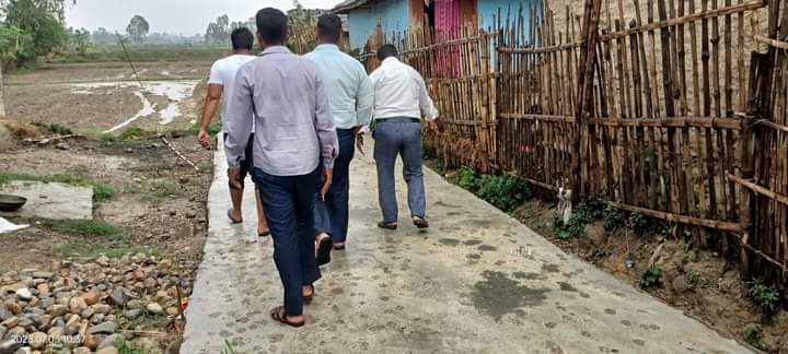 ढलान गुस्तरहीन भएपछि गाउँपालिका अध्यक्ष र प्राविधिक टोलीले गरे अनुगमन