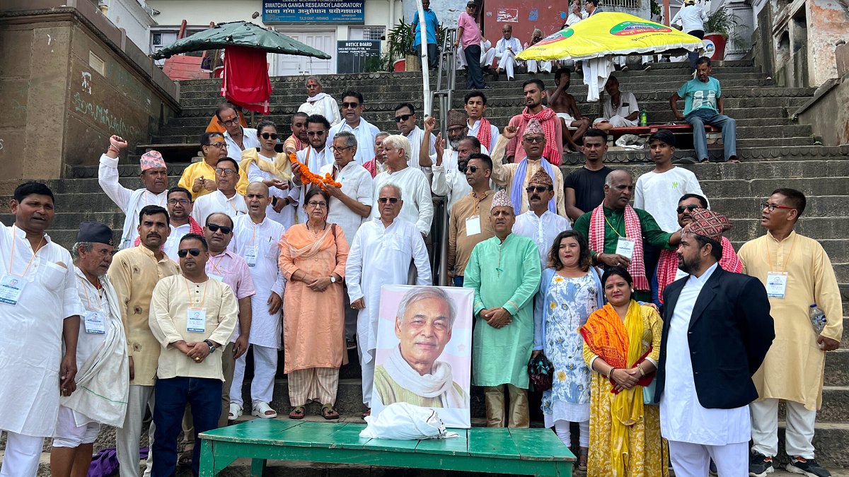 मङ्गलबार साँझ साँढे चारबजे काशी हिन्दु विश्वविद्यालयमा शोक सभा आयोजना गरेपछि उनको अस्तु तुलसीघाट सेलाउँदा संकट मोचन के महन्त प्रोफेसर विश्वम्भर नाथ मिश्र, मोहन प्रकाश जी, भाजपा नेता अशोक पाण्डेयलगायत भारतीय नेता तथा नेपालबाट अस्तु लिएर गएका नेपाली कांग्रेसका नेता तथा नेता गिरिका अनुयायी सहभागि थिए ।