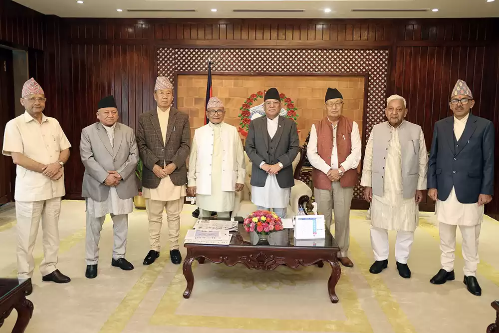 काठमाडौँ । प्रधानमन्त्री पुष्पकमल दाहाल प्रचण्डले सात प्रदेशका प्रदेश प्रमुखहरुसँग भेटवार्ता गरेका छन् ।