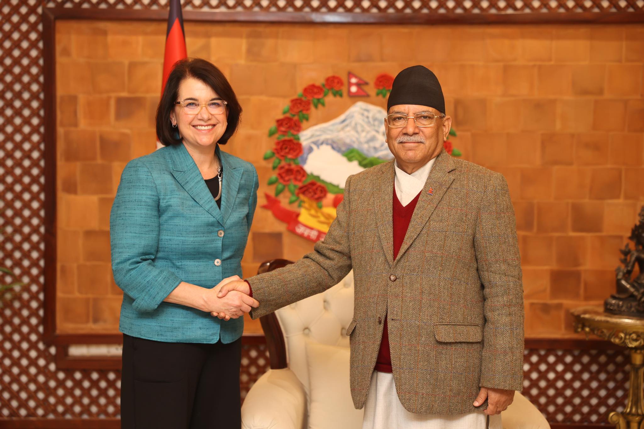 प्रधानमन्त्री प्रचण्ड र अमेरिकी राष्ट्रिय सुरक्षा परिषदकी वरिष्ठ निर्देशक लाउबाचरबिच भेटवार्ता
