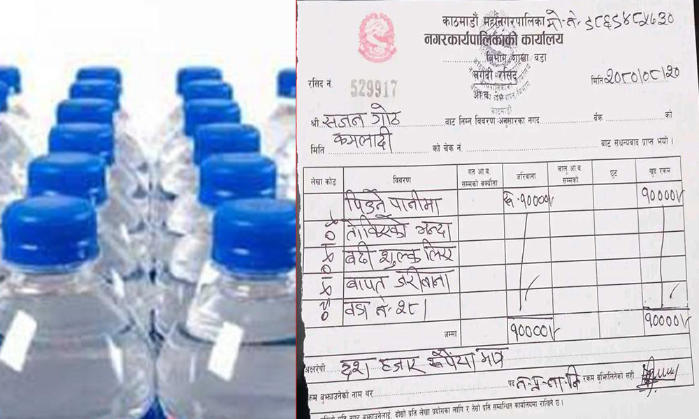काठमाडौं । काठमाडौं महानगरपालिकाले एक बोतल पानीको ४० रुपैयाँ लिने पसलेलाई १० हजार रुपैयाँ जरिवाना गराएको छ । बुधबार महानगरले वडा नम्बर २८ स्थित सजन गोठ कमलादीलाई तोकेको मूल्यभन्दा बढी शूल्क लिएबापत उक्त जरिवाना तिराएको हो ।