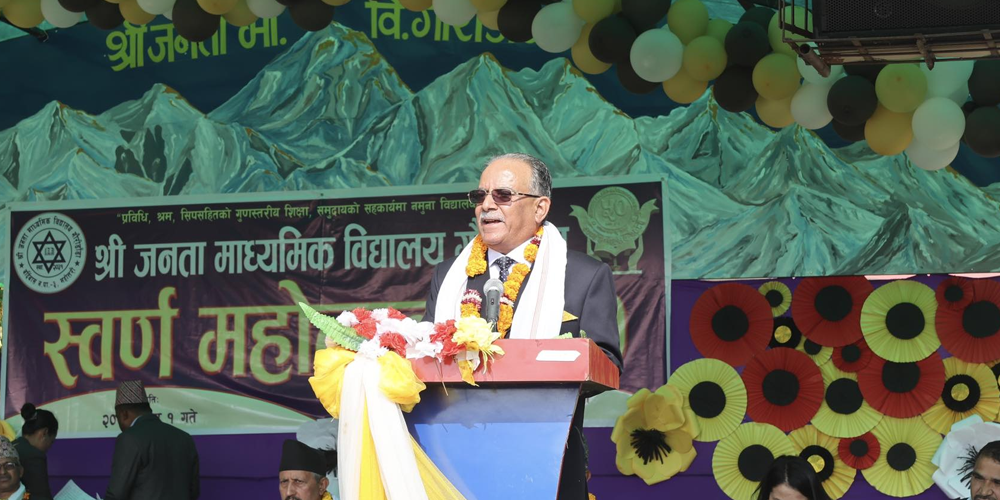 आइतबार दिउँसो जनता मावि गौरीडाँडाको स्वर्ण जयन्ती समारोहमा प्रधानमन्त्री ‘प्रचण्ड’ले एक्काइसौँ शताब्दीको डिटिजल युगमा नेपालजस्ता विकासशील देशहरू भूमण्डलीकरणको बहुआयमिक दवावमा गरेको भन्दै आधारभूत तहदेखि नै हाम्रो पाठय्क्रममा युगसापेक्ष गुणात्मक परिमार्जन आवश्यक रहेको बताएका हुन् ।