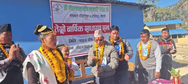 काठमाडौं । कैलाली जिल्लाको मोहन्याल गाउँपालिकामा रहेको मोहन्याल कृषि सहकारी संस्था लि. मोहन्याल ४ शान्तिपुरको तेश्रो बार्षिक साधारणसभा कार्यक्रम मोहन्याल ४ शान्तिपुर सम्पन्न भएको छ । पालिकाका अध्यक्ष देविदत्त उपाध्याय प्रमुख अतिथि रहेको कार्यक्रममा कृषि सहकारीले जनजिविकोपार्जनमा टेवा पुगेको अध्यक्षको भनाइ थियो ।