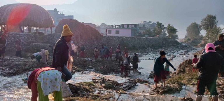 प्यूठान । प्यूठान नगरपालिकाका वडा नं. २, ३ र ४ का स्थानीय नागरिकले आफ्नो वडा क्षेत्र भएर बग्ने नदी सरसफाइ अभियान चलाएका छन् ।