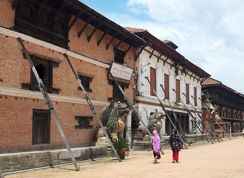 भक्तपुर । भूकम्पले क्षतिग्रस्त भक्तपुरको ५५ झ्याले दरबारसँगै जोडिएको मल्लकालीन थन्थु दरबारलाई भक्तपुर नगरपालिकाले आफ्नै लगानीमा मल्लकालीन शैलीमा पुनःनिर्माण गर्ने भएको छ ।