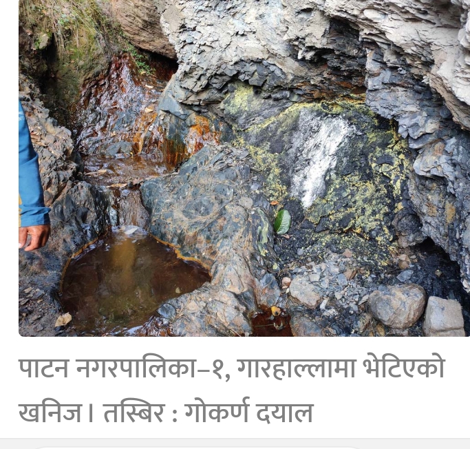 पाटन नगरपालिका–१, गुत्थडी र गरालेकको खोलामा पहेँलो रङको खनिज पानीमा बग्ने गरेको पाइएको छ ।