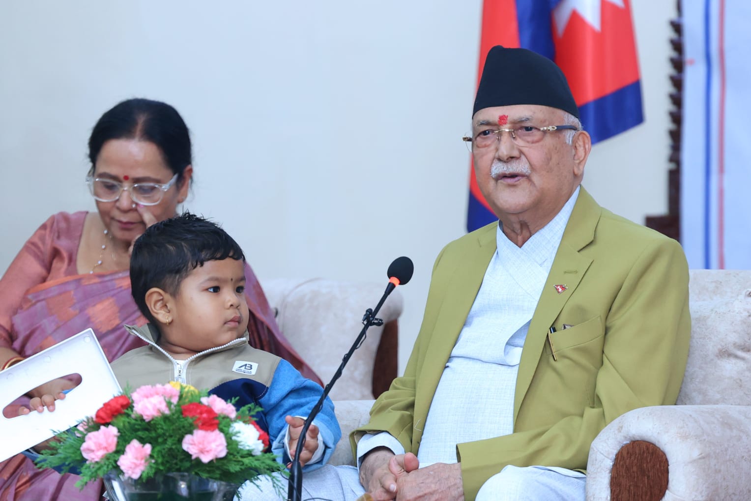 प्रथम महिला राधिका शाक्य, राष्ट्रिय बाल अधिकार परिषद्का सदस्यसचिव इन्दिरादेवी ढकाल, बाल सङ्गठनका अध्यक्ष विद्या न्यौपानेलगायत सहभागी कार्यक्रममा प्रधानमन्त्री ओलीले संयुक्त राष्ट्रसङ्घले गरेका बालअधिकारसम्बन्धी सम्झौता र नेपालको संविधानको मौलिक हकको कार्यान्वयन गर्दै बेसहारा बालबालिकालाई अभिभावकत्व दिएर हेरचाह गर्नपर्ने बताउनुभयो । “बाल्यकालदेखि नै बालबालिकाहरुले असुरक्षाबाट ग्रस्त हुने स्थिति हुनु हुँदैन । अहिलेको सरकार बालअधिकार सन्दर्भमा होसियार छ । अघिल्लो पटक म प्रधानमन्त्री हुँदा बालबालिकाहरु अभिभावकबिहीन भएर कोही बालबालिका सडकमा रहन सन्दैन भनेर भनेको थिएँ ।”, प्रधानमन्त्री ओलीले भन्नुभयो, “उनीहरुले आफ्नो नैसिर्गिक अधिकारलाई अनुहारमा मुस्कानसहित उपभोग गर्न पाउनुपर्छ । भविष्यका कर्णधार बालबालिकामाथि आर्थिक स्थिति कमजोर भए पनि सरकारले लगानी गर्छ । उनीहरुको हितमा सुधार ल्याउन ठोस कदम चाल्नैपर्छ ।”