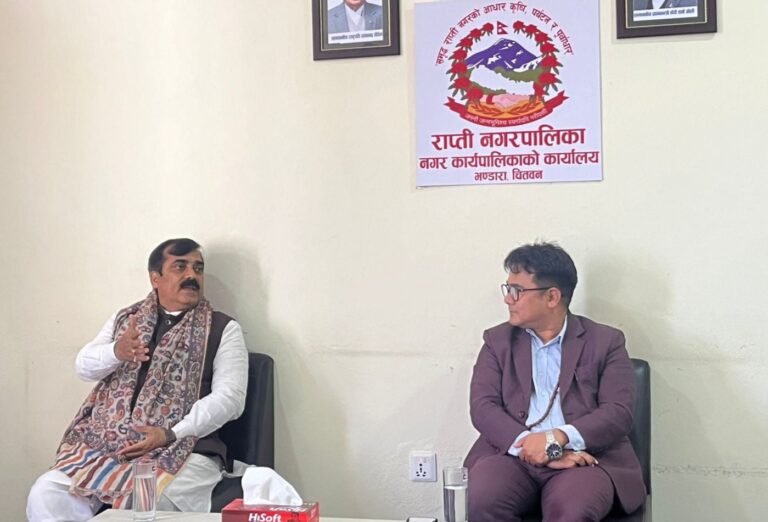 राप्ती नगरपालिकाको कार्यालयमा आज मेयर लामा र पुर्वमन्त्री एवंम भाजपा नेता कुमारबीच शिष्टाचार भेटवार्ता भएको मेयर लामाको सचिवालयले जनाएको हो ।
