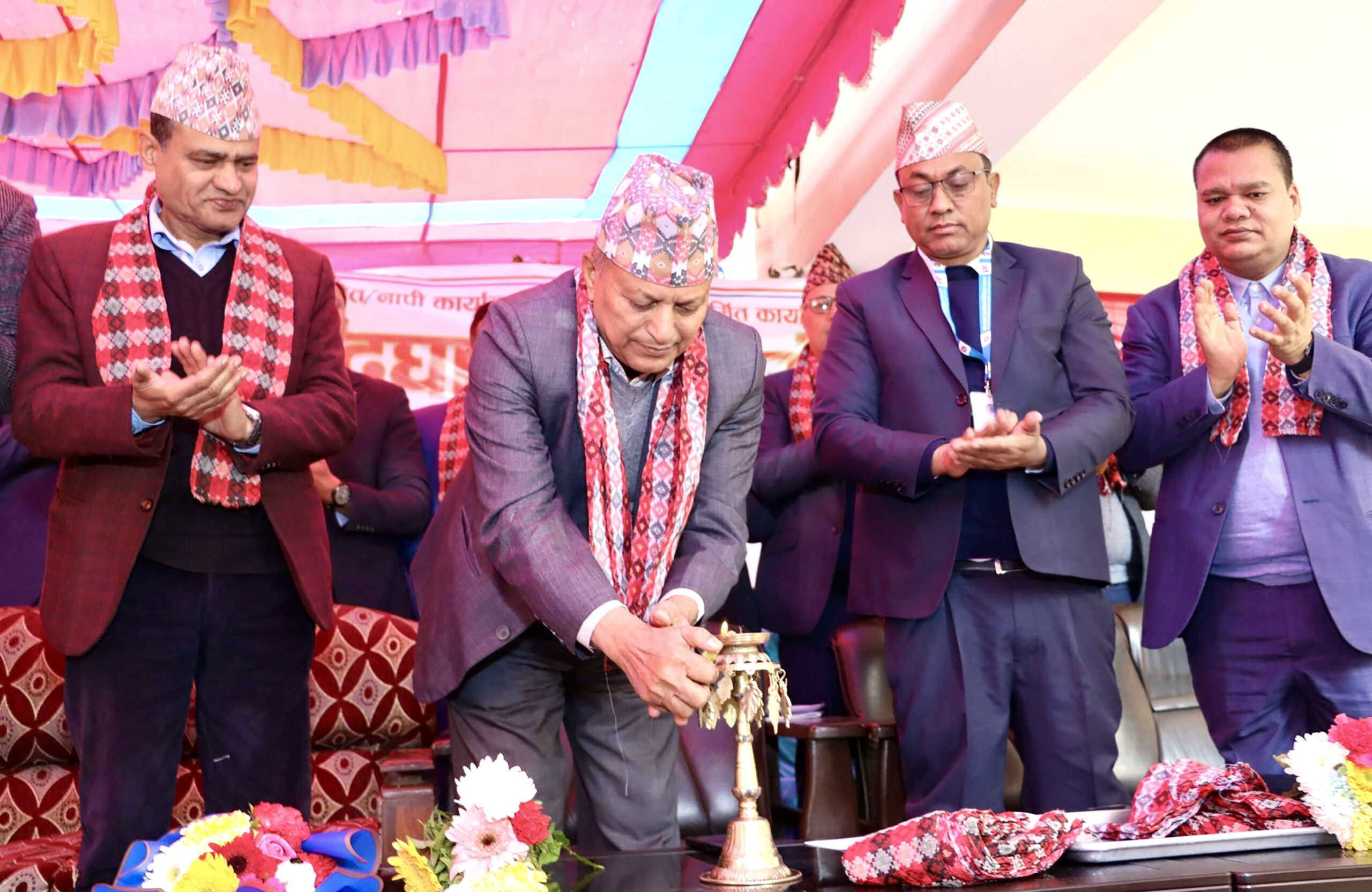 भूमि व्यवस्था, सहकारी तथा गरिबी निवारण मन्त्री बलराम अधिकारी आइतबार चाबहिलस्थित मालपोत÷नापी कार्यालयको नवनिर्मित भवन उद्घाटन गर्नुहुँदै । तस्बिरः गोपाल दाहाल/रासस