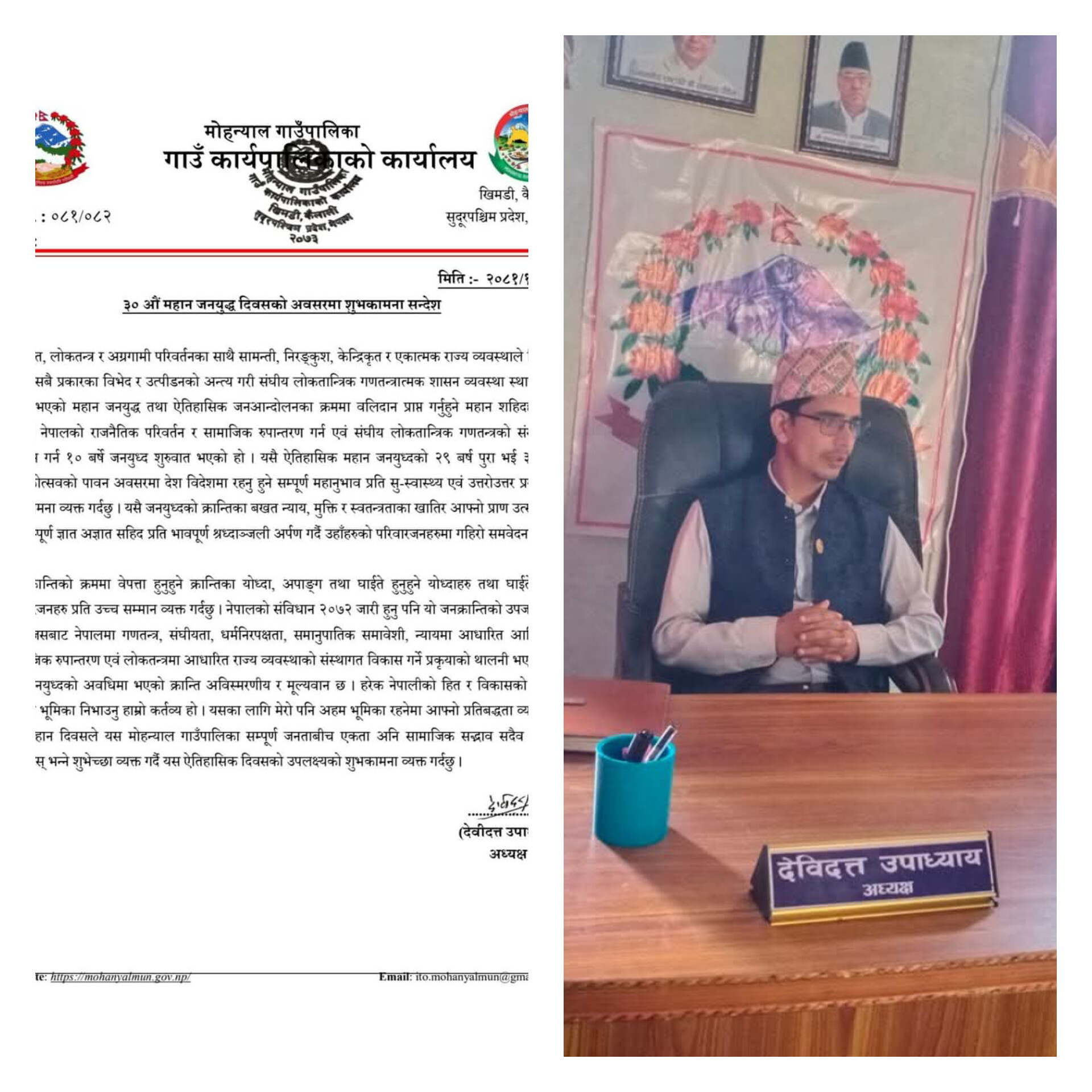 मोहन्याल गाउँपालिकाको जनयुद्ध दिवस शुभकामना सन्देश