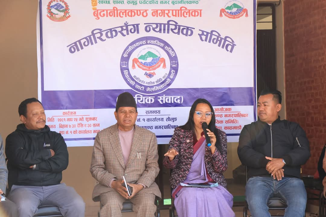 काठमाडौं । काठमाडौं जिल्लाको बुढानिलकण्ठ नगरपालिकाले ‘नागरिकसँग न्यायिक समिति कार्यक्रम’