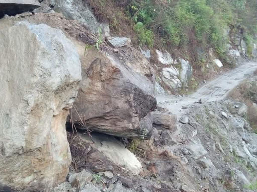 सङ्खुवासभाको खाँदबारी–किमाथाङ्का सडक सुक्खा पहिरोका कारण अवरुद्ध