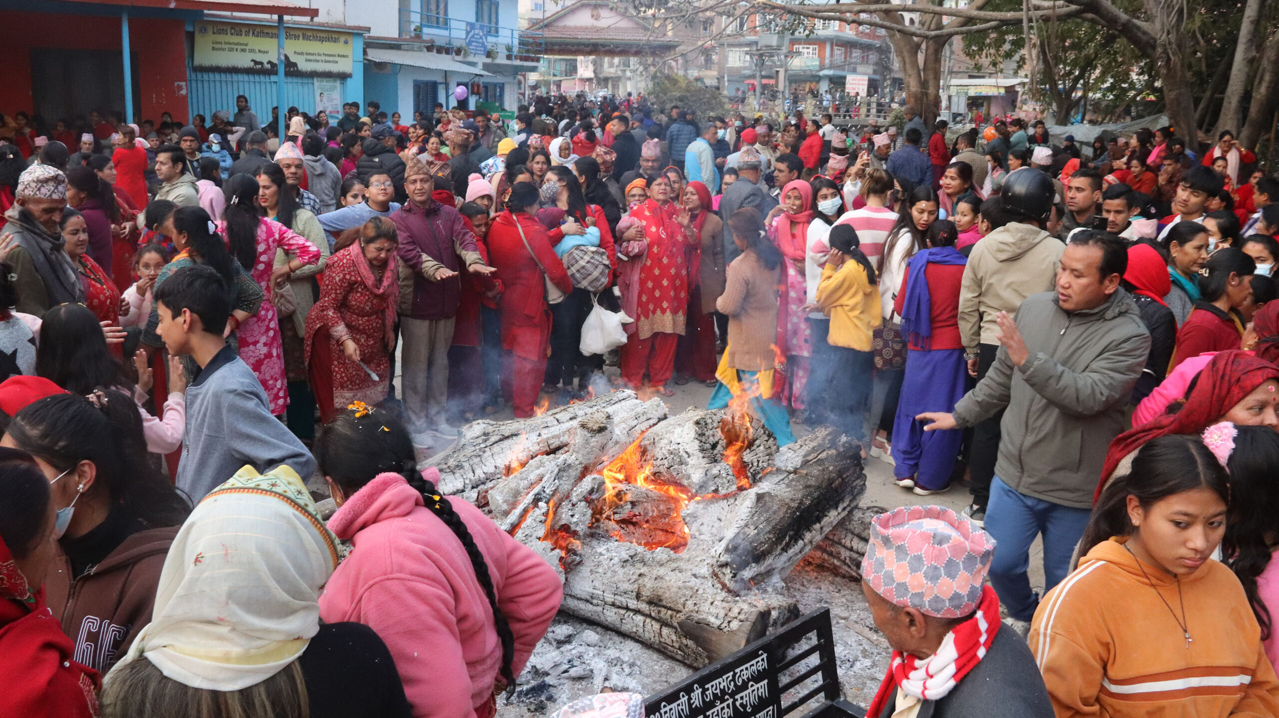 काठमाडौँ महानगरपालिका-१६ स्थित तारकेश्वरधाममा बुधबार महाशिवरात्री पर्व मनाउन आएका भक्तजन शिव धुनी जगाउँदै।