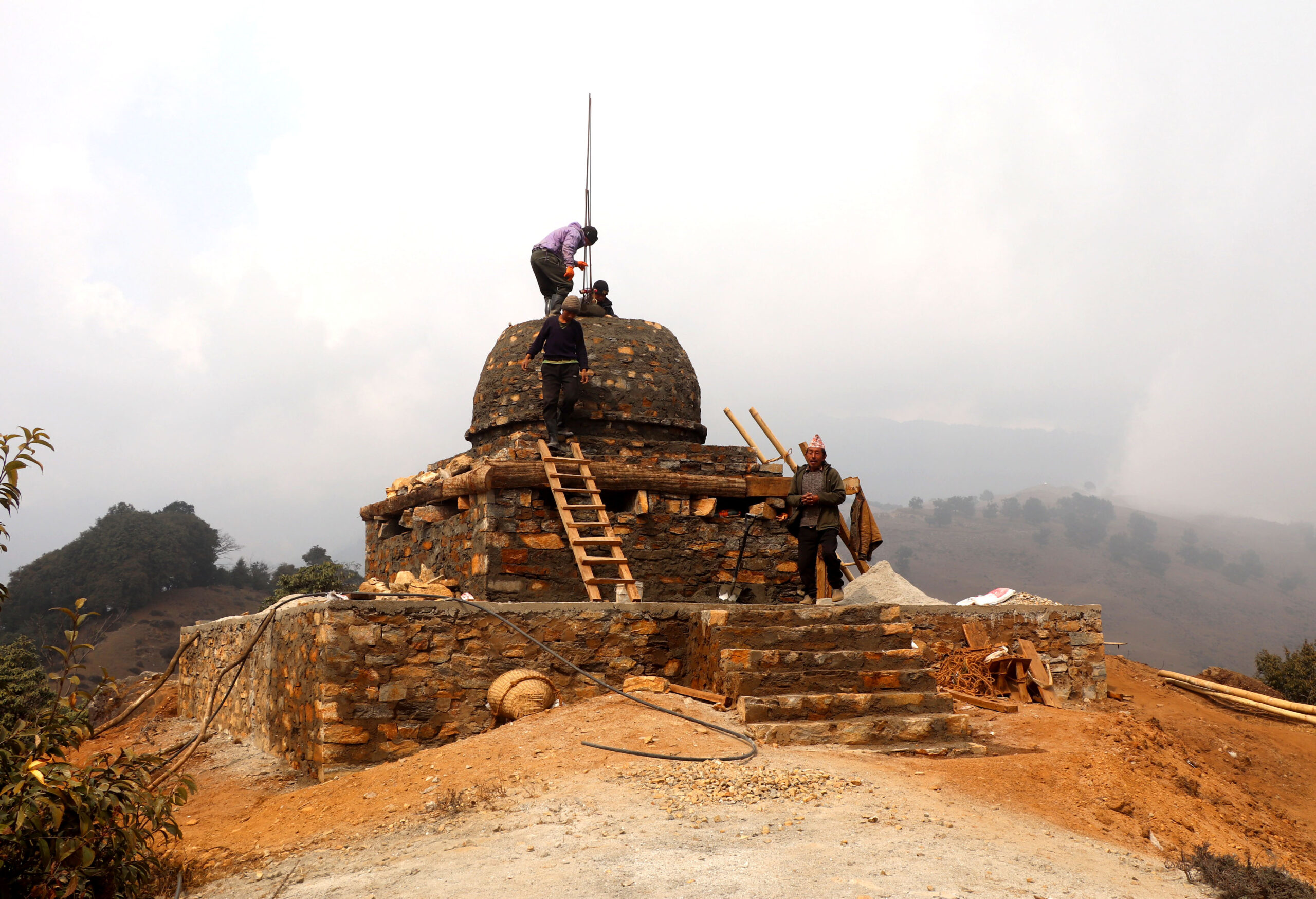 काठमाडौं । संस्कृति, पर्यटन तथा नागरिक उड्डयन मन्त्रालयको रु २७ लाखको लागतमा भोजपुरको टेम्केमैयुङ–९ पाँचधारेमा निर्माण भइरहेको बौद्ध स्तूपा ।