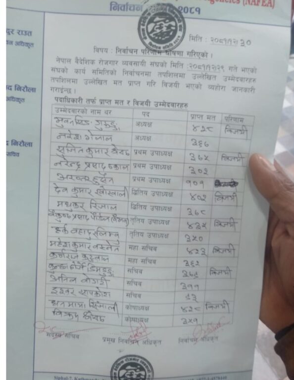 वैदेशिक रोजगार व्यवसायी संघको अध्यक्षमा कांग्रेस निकट गुरुङ विजयी