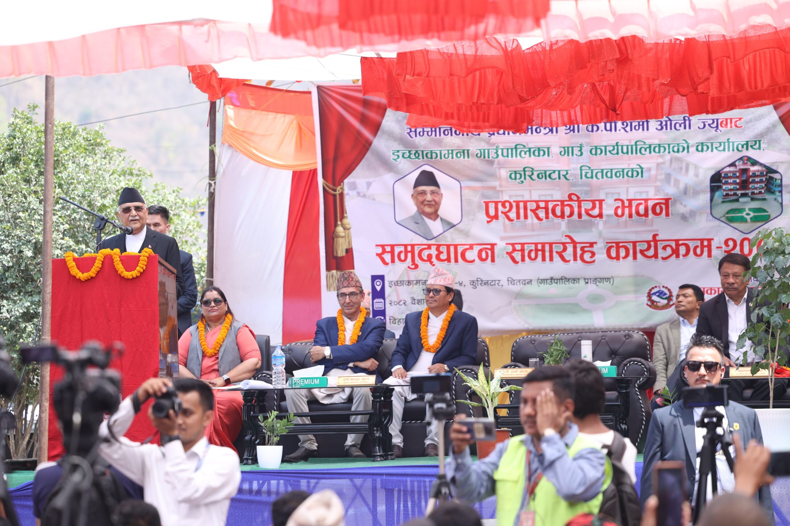 चितवनको इच्छाकामना गाउँपालिकाको प्रशासकीय भवनको आज उद्घाटन गर्दै प्रधानमन्त्री ओलीले देशमा स्थिरता, विकास र सुशासन दिनका लागि इतिहास बोकेका दलहरु एकसाथ मिलेर यो सरकार बनेकाले सरकार आफ्नो लक्ष्य र गन्तव्यमा सुस्पष्ट रहेको बताउनुुभएको हो ।