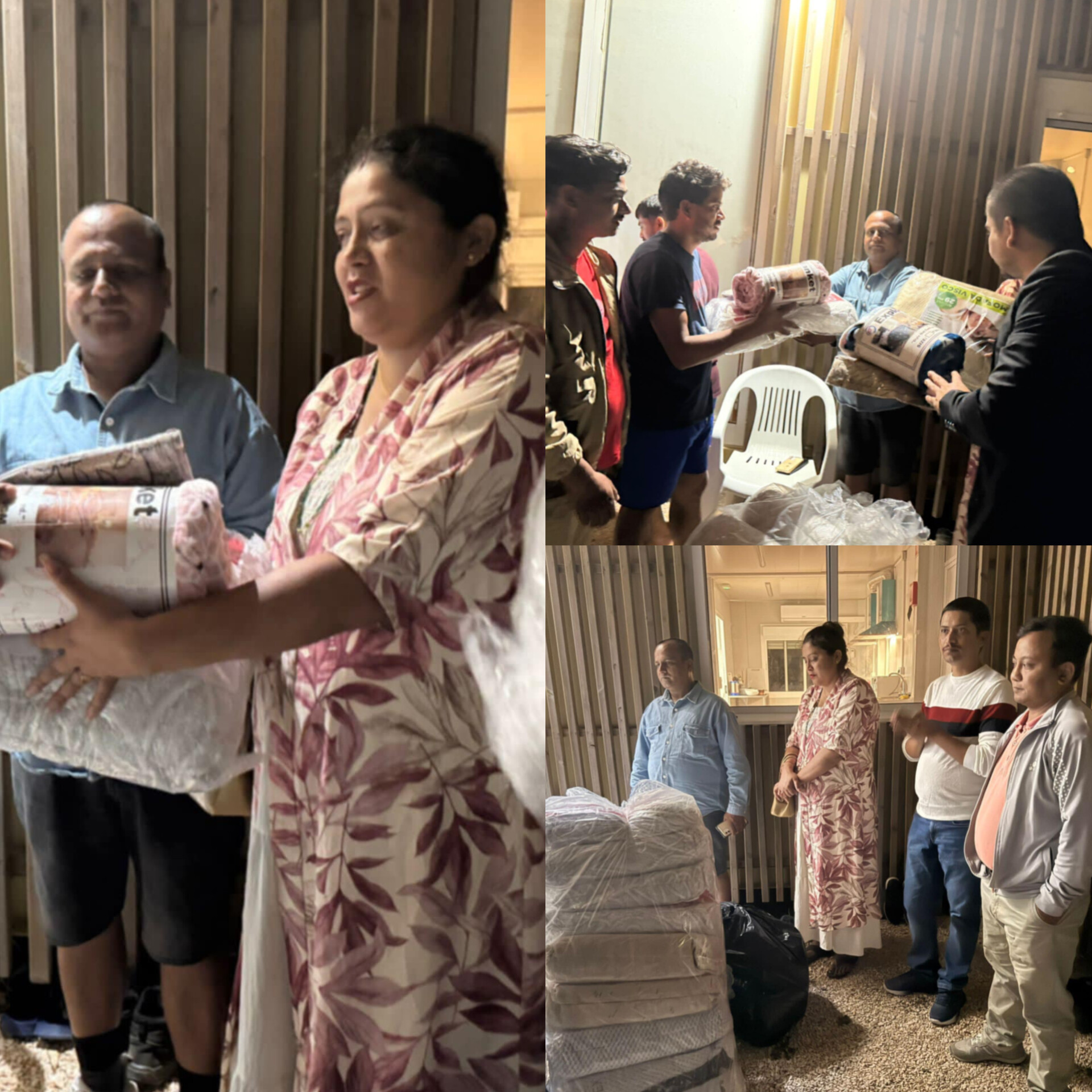 प्रवासमा पनि नेपाली अभिभावक रहेछ भन्ने आभास भएको गुल्मिका लोकु सेन बताउछन । राहत बितरणमा एनआरएनए राष्ट्रिय समन्वय समितिका केन्द्रीय सचिब तिलक गैरे ,आइसिसी सदस्य राजकुमार गुरुङ्ग , उपाध्यक्ष द्वय निर्पेश गिरि, सुदन निउरे, महासचिव गोबिन्द बुढाथोकी , सदस्यहरू बिनोद के सि हरि देवकोटा लगायतको उपस्थिती रहेको पत्रकार दिपक भण्डारीले जानकारी गराउनुभयो ।