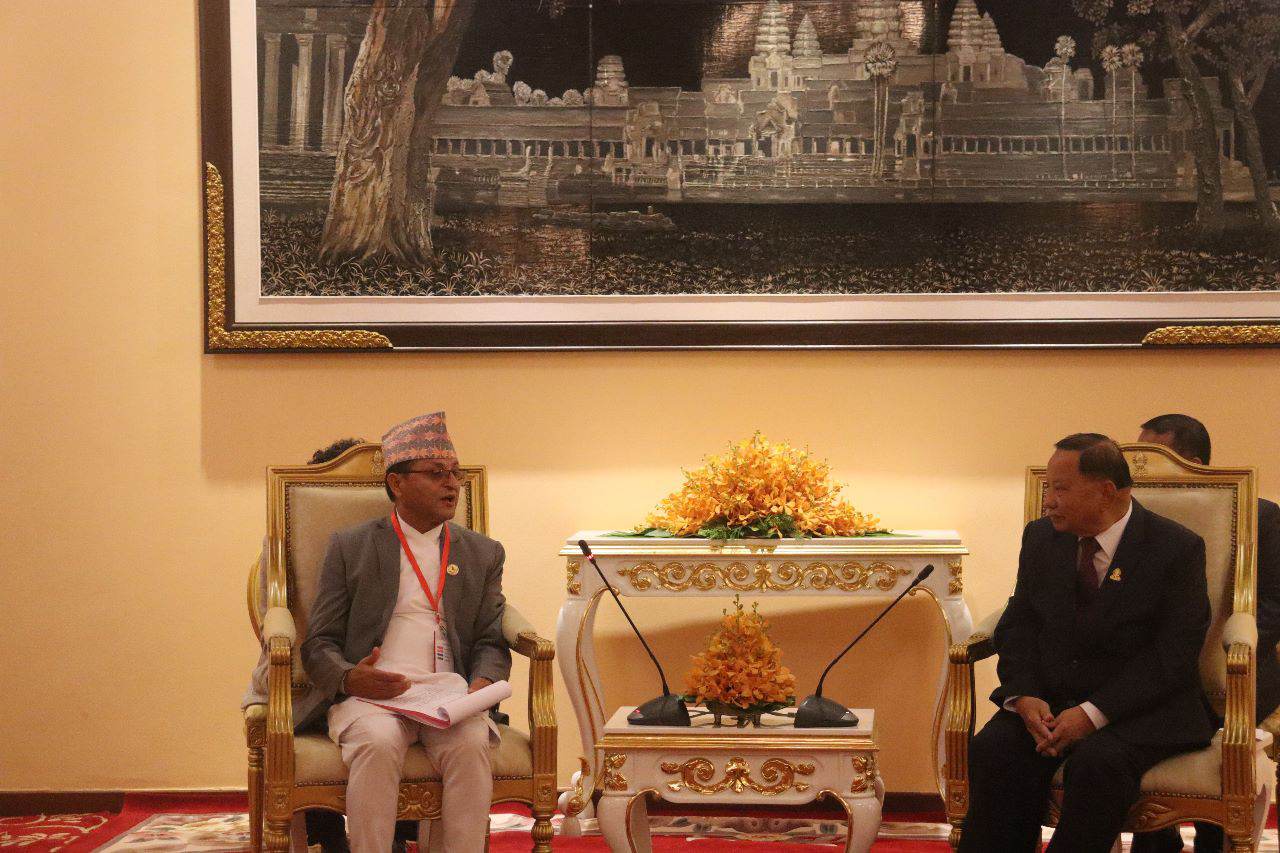 काठमाडौं। राष्ट्रिय सभाका अध्यक्ष गणेशप्रसाद तिमिल्सिनाले कम्बोडियाका समकक्षी सिनेटका अध्यक्ष समदेक विभोलेस्ना फेकदेक चे सुमसँग भेटघाट गरेका छन् । सोमवार दिउँसो सिनेट कार्यालय रातोघरमा भएको भेटमा अध्यक्ष तिमिल्सिनाले दुई देशबीचको पाँच दशक लामो दौत्य सम्बन्धको चर्चा गर्दै कम्बोडिया र नेपालले संयुक्त राष्ट्रसंघ, आईपीयूलगायतका निकायमा हुने प्रतिनिधित्व र मुद्दामा समेत सहयोग र सहकार्य भइरहेको उल्लेख गरे…