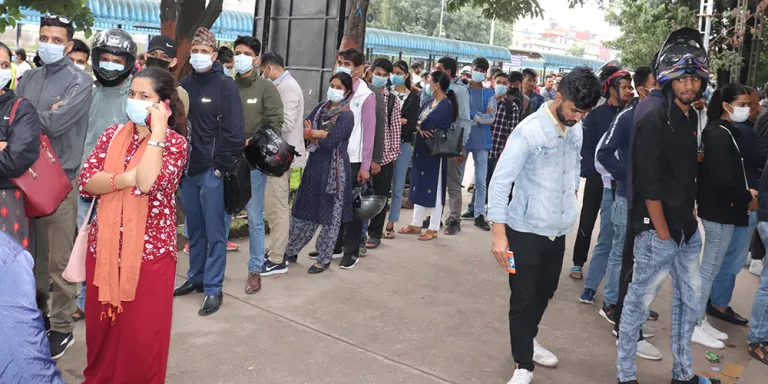 काठमाडौं । काठमाडौंको गंगबु नयाँ बसपार्कको टिकट काउण्टर टिकट लिनेको घुँइचो लागेको छ । दशैँका लागि घर जानेहरूलाई लक्षित गरी अग्रिम टिकट बुकिङ खुल्ला गरेसंगै बसपार्क क्षेत्रमा टिकट निलेको भीड लागेको हो । दशैँका लागि आजदेखि देशभरका विभिन्न स्थानमा जान सार्वजनिक यातायातको यात्रुलाई अग्रिम टिकट बुकिङ खुलेको छ । यही भदौ २२ गते यातायात व्यवस्था…