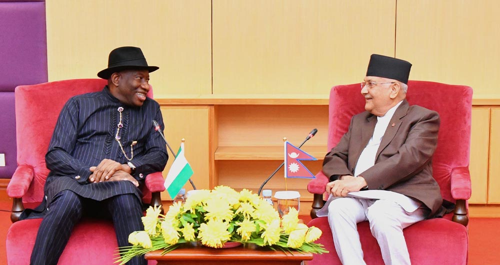 अध्यक्ष ओलीसँग श्रीलङ्का र नाईजेरियाका पूर्वराष्ट्रपतिबीच भेट