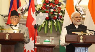 काठमाडौं । नेकपा एमाले निकट नेपाल किसान महासंघले काठमाडौंको बिजुली बजारमा मसाल जुलुस प्रदर्शन गरेको छ । महासंघले सरकारले रेशम चौधरीलाई रिहाइ गरेको र नागरिकता विद्येयक प्रमाणिकरण गरेको भन्दै विभिन्न विरोधका कार्यक्रमअन्तर्गत मसाल जुलुसप्रदर्शन गरेको हो । त्यसैगरी महासंघले भारतले नेपालमा हस्तक्षेप गरेको भन्दै विरोध जनाएको हो । उसले भारतीय विस्तारवाद भएको भन्दै कडा शब्दमा…