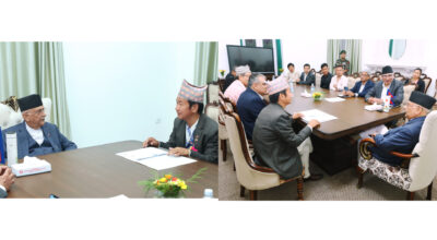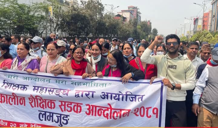 काठमाडौँ, २८ चैत । सिंहदरबारमा सरकार र शिक्षकहरूबिच बार्ता सुरू भएको छ। शिक्षा ऐन जारी गर्नु पर्ने माग गर्दै काठमाडौंमा आन्दोलनरत शिक्षकहरूसँग सरकारले ९ दिन पछि बार्ता सुरू गरेको हो। शिक्षा मन्त्री बिधा भट्टराई पनि सो बार्तामा रहेकी छिन् । palikasamaya