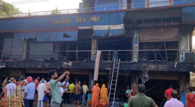 काठमाडौं । धनुषाको जनकपुरधाम उपमहानगरपालिका– ९ रामानन्द चोकमा रहेको रामबाबु रायको ‘जनकपुर विग मार्ट’मा गएराति भषिण आगलागी भयो । जिल्ला प्रहरी कार्यालय धनुषाका अनुसार राति सवा १ बजे बिजुली सर्ट भएर लागेको आगो सात घण्टापछि बिहान करिब ७ः१५ बजेतिर मात्रै नियन्त्रणमा आएको थियो । आगलागी भएको करिब आधा घण्टामै बारुणयन्त्र घटनास्थलमा पुगे पनि मार्टमा लुगाकपडा…