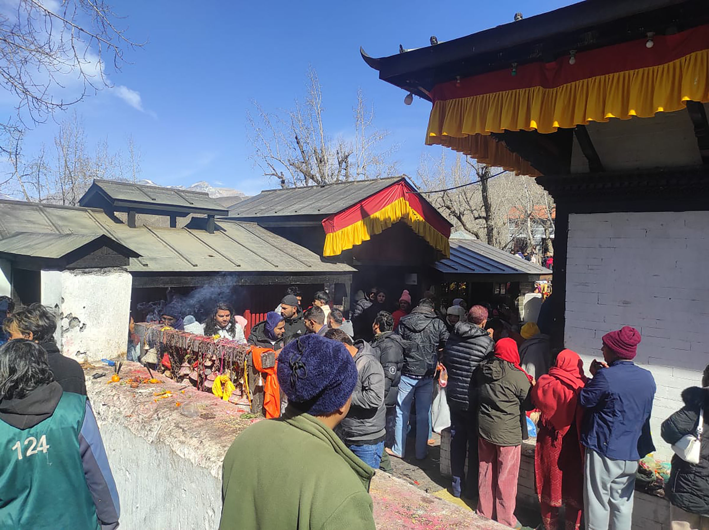 काठमाडौं । हिन्दु तथा बौद्धमार्गीहरुको लागि चर्चित धार्मिक स्थल मुक्तिनाथ मन्दिरमा आइतबार महाशिवरात्रीको दिन भक्तजनले भरिभराउ । देशभरबाट महाशिवरात्रीको दिन पूजाअर्चना गर्न आएका पर्यटकले मुक्तिनाथ मन्दिर बिहान ६ बजेबाट नै भरिभराउ भएको हो। तस्बिर : सुशीलबाबु थकाली /रासस